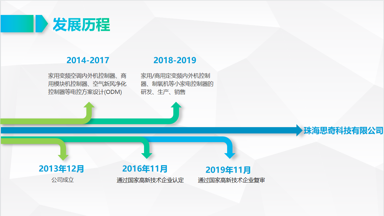 珠海思奇科技有限公司成立于2013年,公司設(shè)立于廣東省珠海市高新區(qū),是一家以智能控制為核心技術(shù),從事智能控制系統(tǒng)研發(fā)、生產(chǎn)、銷(xiāo)售與咨詢(xún)服務(wù)的高新技術(shù)企業(yè),特別在直流電機(jī)驅(qū)動(dòng)技術(shù)上有著豐富的經(jīng)驗(yàn),屬于行業(yè)領(lǐng)先水平,能滿(mǎn)足家電及工控行業(yè)領(lǐng)域直流壓縮機(jī)、風(fēng)扇電機(jī)等各類(lèi)控制需求,為多家知名廠(chǎng)商提供產(chǎn)品配套。另外在AI控制、工業(yè)視覺(jué)檢測(cè)領(lǐng)域,思奇也有著多年的技術(shù)、實(shí)踐積累。作為國(guó)家級(jí)高新技術(shù)企業(yè),始終如一地奉行“創(chuàng)新、品質(zhì)、服務(wù)”的原則承諾,致力于在研發(fā)、供應(yīng)鏈、銷(xiāo)售、服務(wù)、售后等方面的技術(shù)沉淀、資源積累以及貫徹負(fù)責(zé)的態(tài)度,不斷的技術(shù)與產(chǎn)品創(chuàng)新,逐步發(fā)展成為行業(yè)內(nèi)極具潛力的科技公司。作為高科技企業(yè),對(duì)研發(fā)和創(chuàng)新的投入亦是重點(diǎn),同時(shí),公司十分重視核心技術(shù)的保護(hù),截止2023年09月01日,公司已擁有實(shí)用專(zhuān)利21項(xiàng),發(fā)明專(zhuān)利7項(xiàng)的技術(shù)成果。